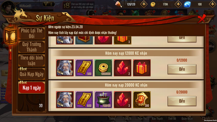 - Phần Thưởng: Xem thông tin chi tiết tại giao diện Sự Kiện