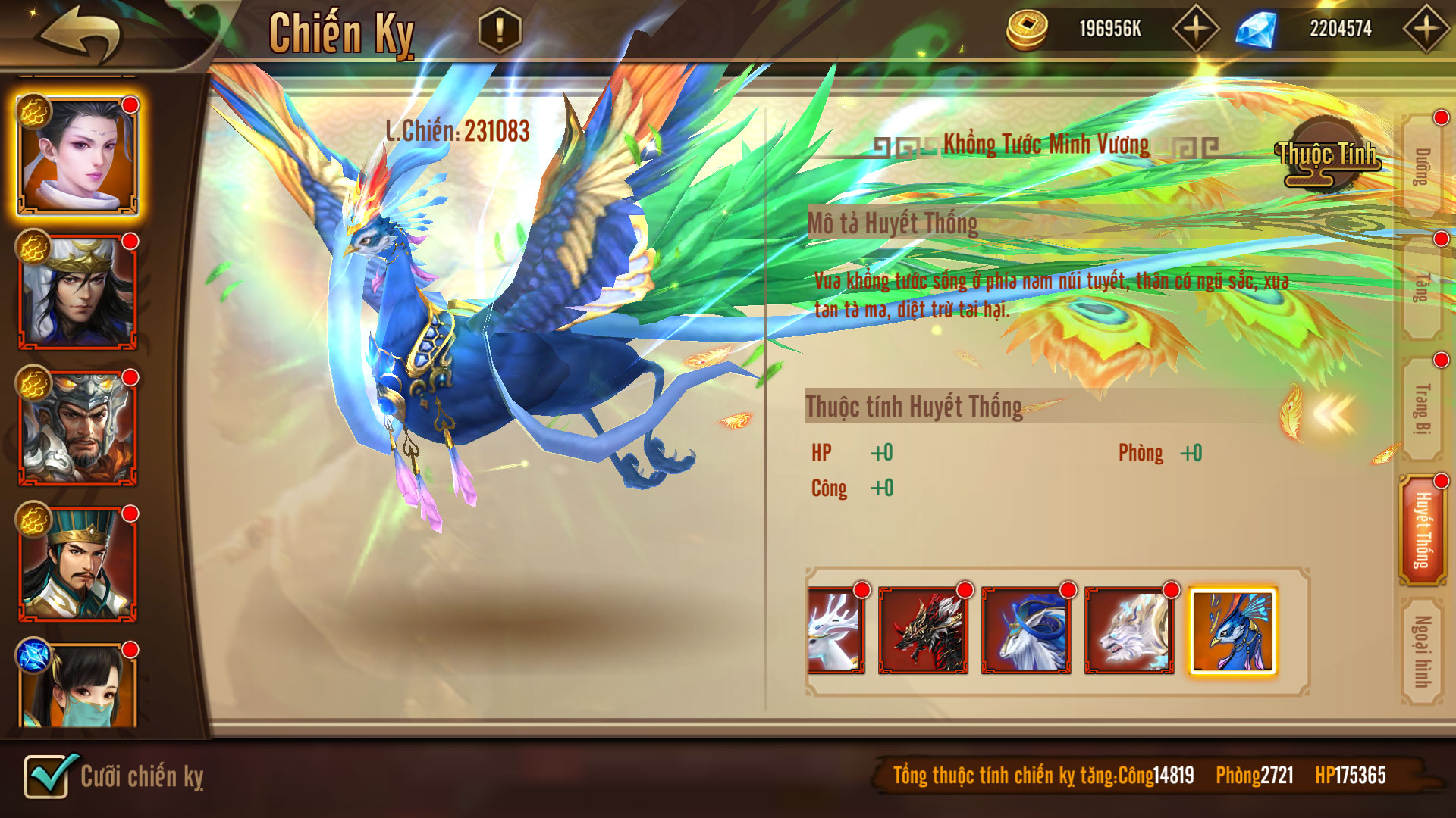 - Đá Huyết Mạch-Khổng Tước Minh Vương là Chiến Kỵ đặc biệt dành cho Tướng Hoa Đăng